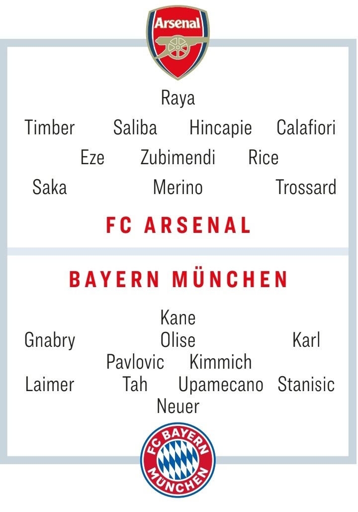 11月24日讯 拜和睦阿森纳在本轮联赛各自获得大捷,两队也将在周中迎来欧冠榜首之争,拜仁作念客挑战阿森纳。《踢球者》也经营了两边首发: