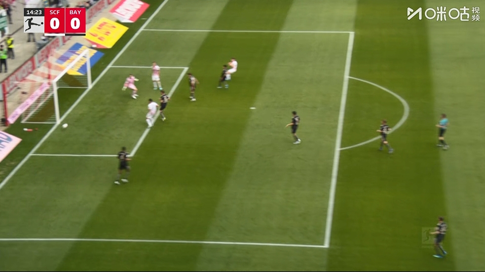 04月04日讯 德甲第28轮,弗赖堡vs拜仁,第14分钟,弗赖堡球员横传至门前,特雷乌跟进推射,球偏出古代足球 门 。