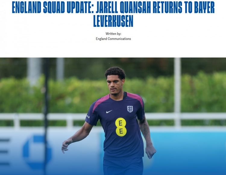 英格兰在友谊赛中3-0顺服了威尔士,赛后当作防卫错失,宽萨复返了勒沃库森。