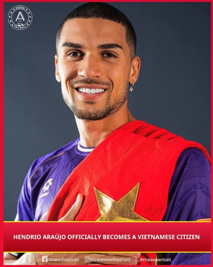 10月16日讯 据ASEAN FOOTBALL报说念,降生于巴西的31岁中场球员亨德里奥-阿劳若-达-席尔瓦已发达赢得越南公民身份,并取了一个当地名字杜黄轩(Đỗ Hoàng Hên)。