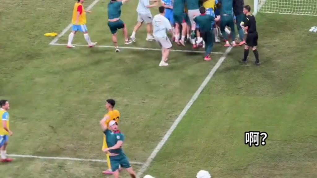 赛后有球迷拍到刘殿座站在原地有些稳重,钟义浩过来跳起来抱刘殿座。