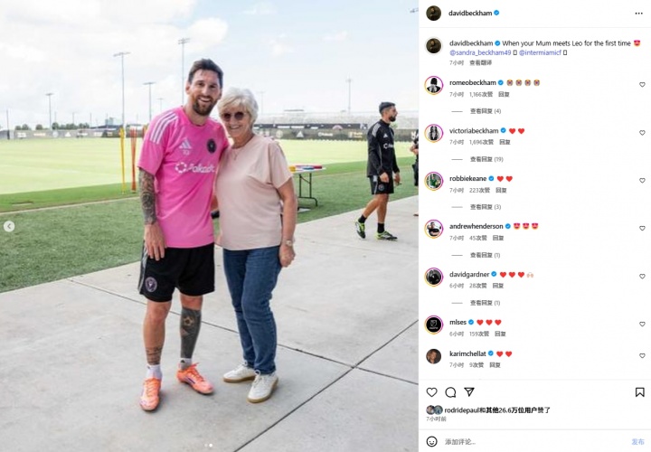 贝克汉姆晒出母亲与梅西合照并写谈:当你的母亲第一次见到梅西时。