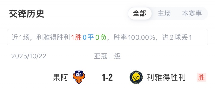 得胜亚冠二级小组赛3轮全胜位居D组第一,联赛7轮全胜积21分位居沙特联榜首;果阿亚冠二级小组赛3轮全负位列D组垫底,联赛14胜6平4负积48分位居印度超第二。