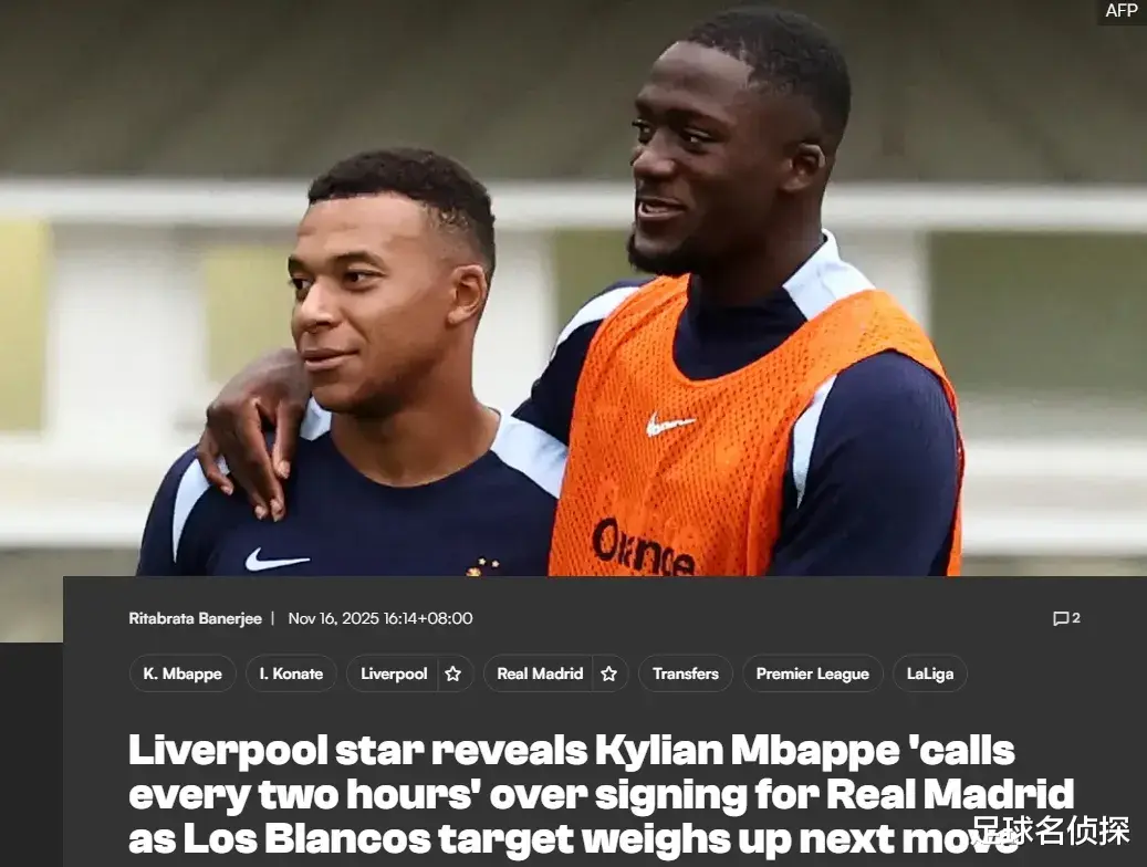 科纳特近日深化,他的同族姆巴佩“每两个小时”就会给他打电话劝说加盟皇马,而利物浦中卫的条约来岁夏天就要到期。