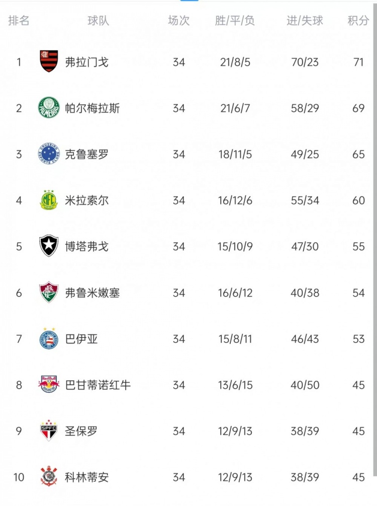 注:本赛季目田者杯决赛弗拉门戈vs帕尔梅拉斯,将有一队以卫冕冠军身份获取下赛季参赛履历,因此巴甲的目田者杯参赛履历顺延至前7名。