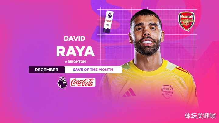 阿森纳门将戴维・拉亚在对阵布莱顿的比赛中完成的关键指尖救险,获评 2025 年 12 月厚味可乐英超月度最好扑救。