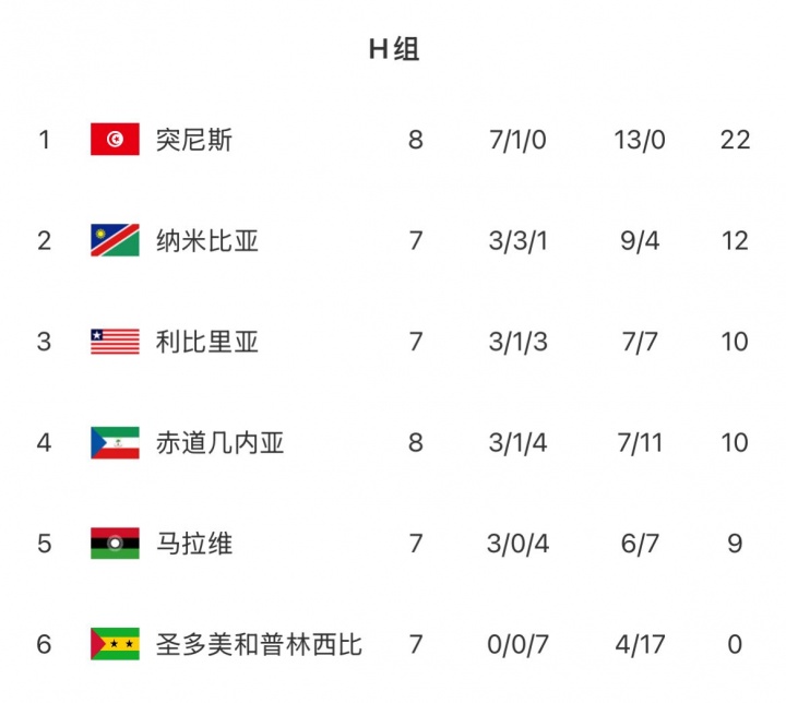 突尼斯谢世初赛非洲区小组赛推崇苍劲,于今8战7胜0失球,在还有2轮的情况下,照旧提前锁定H组小组第一。