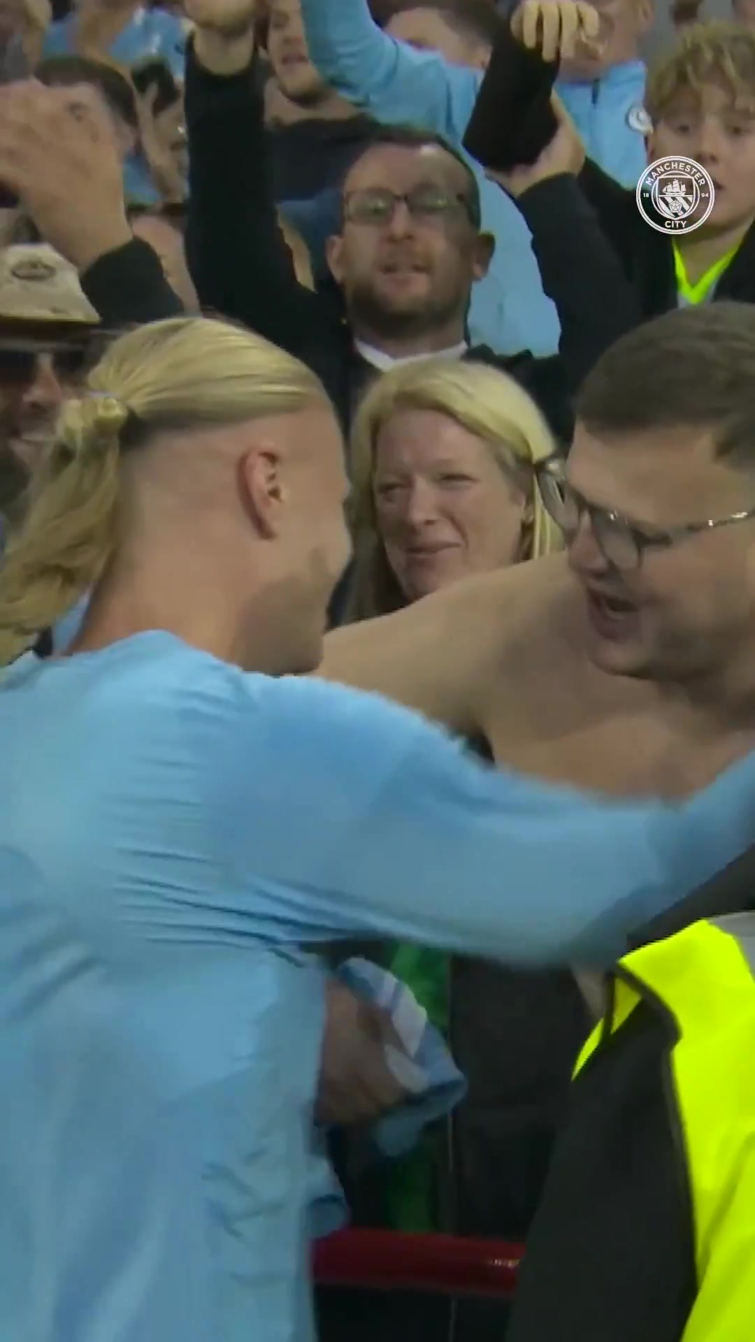曼城官方社媒晒出视频,哈兰德赛后将球衣援助给别称球迷,后者与哈兰德拥抱,并亲吻了他的面颊。