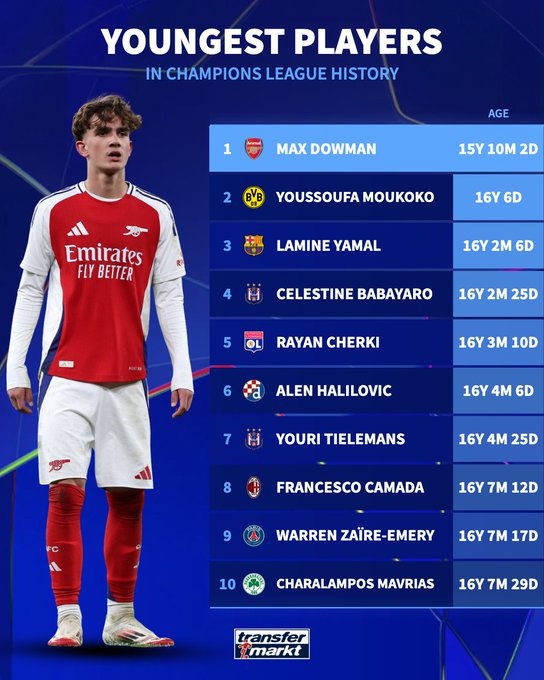 11月5日讯 欧冠联赛阶段第4轮比赛,阿森纳在客场以3-0的比分完胜布拉格斯拉维亚。本场比赛,阿森纳15岁小将谈曼替补登场成欧冠历史出场最年青球员。