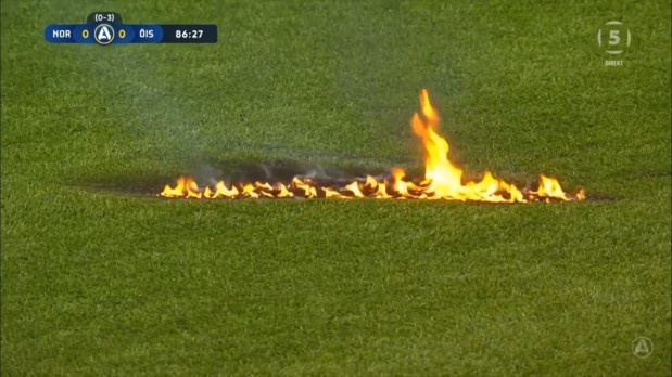 12月1日讯 据talkSPORT报谈,瑞典足球联赛发生一场严重球迷骚乱,有球迷甚而向球场投掷烟花导致草坪着火。